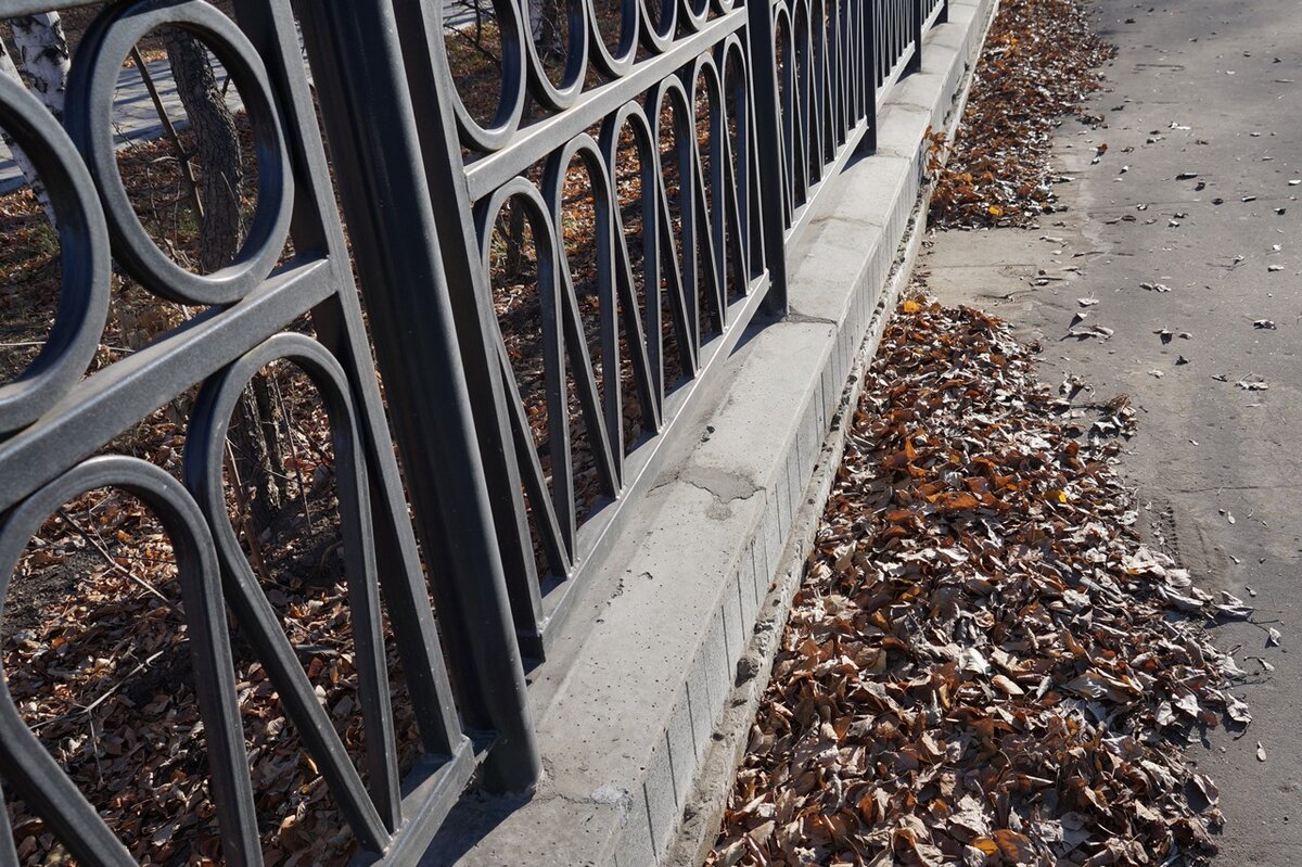 Вместо чугунного литья профильная труба со стенкой полтора миллиметра, местами ржавеет, ещё и дождей не было, забор стоит два месяца.
